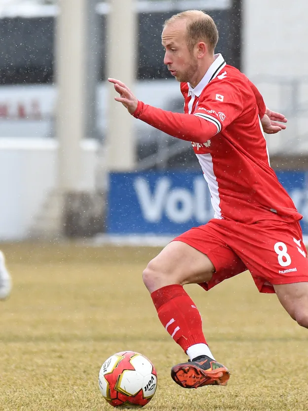A cross-field pass cut through the cold Calgary air, controlled by the chest of attacker Tobias Warschewski into the path of Harry Paton.