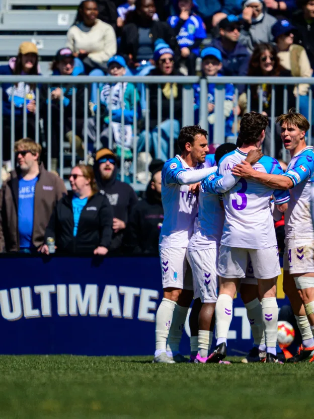 On the second phase of a corner kick, Matthew Baldisimo flicked a shot goalward that was parried away by Marco Carducci. At the time of his strike, Díaz moved forward so that there was no separation, or daylight, between himself and the second-last Halifax Wanderers' defender. His entire body was not beyond the defender.